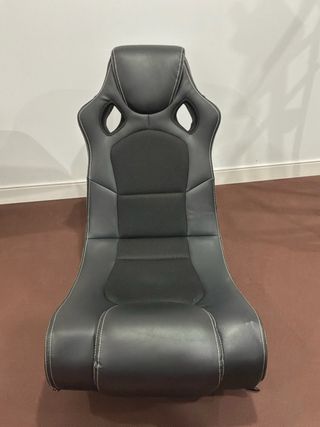 Silla gamer de diseño ergonómico, ideal para largas sesiones de juego o trabajo. Cuenta con altavoces integrados para una experiencia inmersiva. - Tapicería en polipiel negra con costuras blancas. - Respaldo alto con soporte lumbar. - Diseño deportivo.