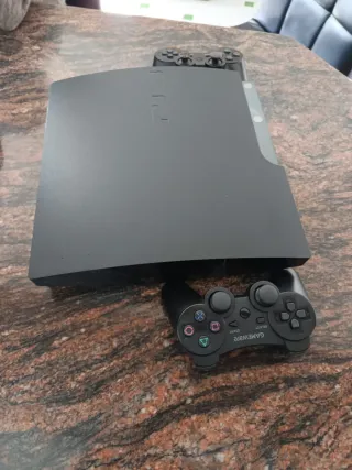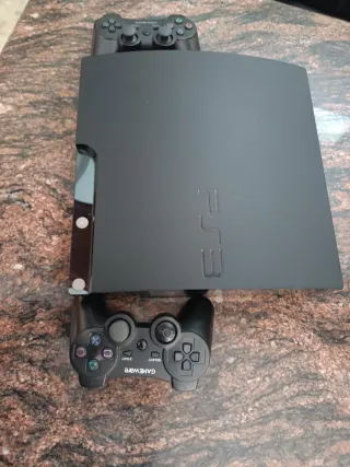 Consola Playstation 3 en buen estado, lista para horas de entretenimiento. - Incluye dos mandos inalámbricos, también de segunda mano e inalámbrico con un solo cable para cargarlos y o juegar conectados, para jugar con amigos. - Color negro elegante.