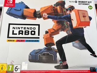 Nintendo Labo. 3 juegos: el del robot que se ve en la fotografía, el del volante que conduce varios vehículos y un kit de varios (piano, caña de pescar...). TODOS ESTÁN MONTADOS. NO ENVÍOS. VAN CON SUS CORRESPONDIENTES TARJETAS FÍSICAS SIN SUS CAJAS