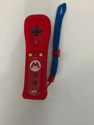 Mando Wii Remote Plus con diseño especial de Mario. - Color rojo. - Incluye correa azul. - Botones de control y A. - Logo de Mario en el centro. - Botones 1 y 2. - Indicador Wii MotionPlus INSIDE.