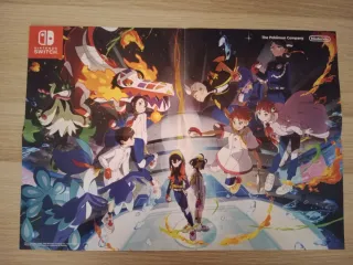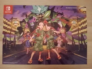 Póster promocional del contenido descargable (DLC) para Pokémon Escarlata y Púrpura. - Diseño inspirado en el universo Pokémon. - Ideal para coleccionistas y fans de la saga.