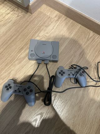 Consola clásica PlayStation 1 en su edición Mini. - Color gris. - Incluye dos mandos. - Cableado para conexión.