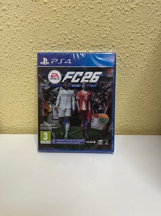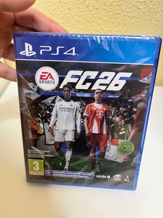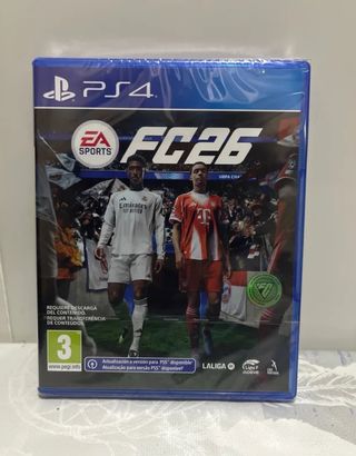 Videojuego FC 26 para PS4. Consola Playstation 4. Juego de deportes. Fútbol. FIFA. Requiere descarga de contenido. Tiene un código para actualizarlo a la versión disponible de PS5. Estado: nuevo, precintado. Hago envíos.