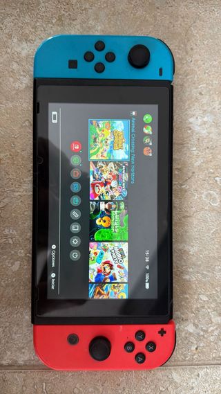 Consola Nintendo Switch + accesorios - Joy-Con en color azul y rojo + pareja de Joy-Con grises (el izquierdo-gris a veces tiene el drift de los mandos originales; los de colores van perfectos) - Base de carga + fuente de alimentación original - Cable HDMI - Tarjeta de memoria SanDisk 128gb - Agarre para Joy-Con. - Funda de viaje El serial bajo la switch es: XAJ40045542769