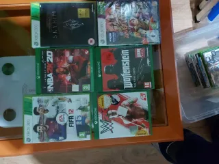 Lote de videojuegos para Xbox 360 y Xbox One. - The Elder Scrolls V: Skyrim (Xbox 360) - Kinect Adventures! (Xbox 360) - NBA 2K20 (Xbox One) - Wolfenstein: The New Order (Xbox One) - FIFA 12 (Xbox 360) - WWE 2K17 (Xbox One) Las caratulas están en ingles
