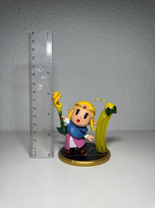 Figura coleccionable inspirada en Zelda, con un tamaño similar a los Amiibo. - Diseño detallado con colores vivos. - Base decorativa incluida.