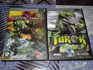 Dos videojuegos para PC con sus manuales. - Enemy Engaged: Apache Havoc - Turok: Cazador de Dinosaurios - Ambos juegos están probados y se instalan sin problemas.