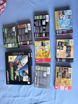 Lote de 9 cajas de videojuegos para Nintendo 64. - Donkey Kong 64 - Lylat Wars - The Legend of Zelda: Majora's Mask - Turok: Dinosaur Hunter - Wave Race 64 - Micro Machines 64 Turbo - Mario Kart 64 - Super Mario 64 - Mistical Ninja 2 Todos con manual ecepto mistical ninja 2 La caja de turok 2 esta en condiciones aceptables , mirar fotos