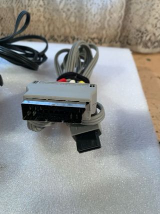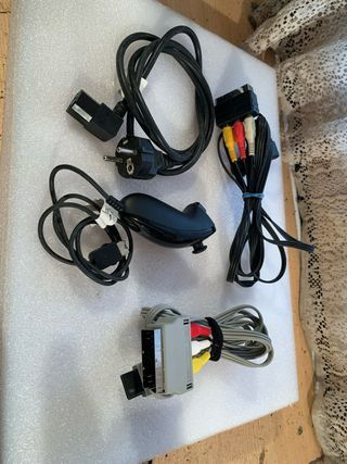 Conjunto de accesorios para la consola Nintendo Wii. - Cable de alimentación con enchufe europeo. - Cable AV con conexión SCART y RCA (rojo, blanco, amarillo). - Mando de control negro.