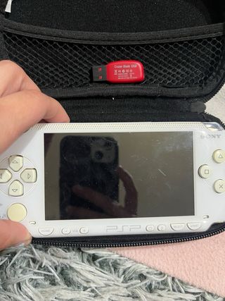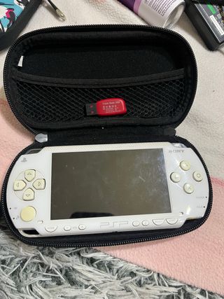 Consola portátil Sony PSP en color blanco. Incluye funda protectora y una memoria USB. Y el cable oara cargarla - Funda de transporte con compartimento de malla. - Memoria USB Cruzer Blade 32GB.(con muchos juegos) No se si el lector de juegos fisicos va o no