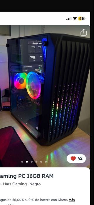 Ordenador torre de sobremesa Mars Gaming con iluminación RGB. Intel i5 16 RAM Grafica Rx 560 4 Gb Ssd 128+ 1Tb hdd