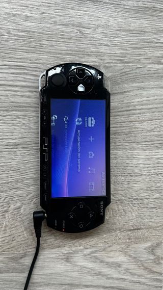 Consola portátil Sony PSP en color negro. Ideal para llevar tus juegos a todas partes. - Juegos grand theft auto liberty city - Tapa de bateria trasera incluida ya que muchos no la llevan - Bateria incoporada pero no funciona la pongo por si alguien puede darle otra vida - Marcas de uso - Sin cargador - Pantalla perfecta.
