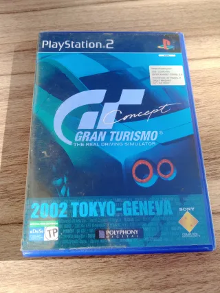 Videojuego de carreras para PlayStation 2. Gran Turismo Concept 2002 Tokyo-Geneva para la consola PlayStation 2 (PS2). Es un título de simulación desarrollado por Polyphony Digital. Presenta más de 100 vehículos prototipo y "concept cars" de las ferias de motor de Tokio y Ginebra de 2001 y 2002. El juego es una versión abreviada que utiliza el motor gráfico, circuitos y bandas sonoras de Gran Turismo 3. Incluye modos para un jugador y multijugador, y permite conectar hasta 6 jugadores mediante tecnología iLink. La versión de la imagen es PAL e incluye español como idioma de juego. Fue lanzado en Europa el 17 de julio de 2002.