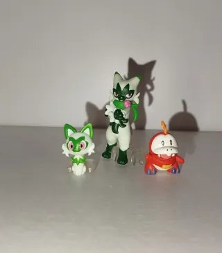 Figuras oficiales de pokemon hechas por Bandai, en buen estado pero sin caja original. Incluye a Fuecoco, Sprigatito y Floragato. Visita mi perfil para ver más figuras.