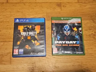 Se venden dos videojuegos para consolas. Precio por los 2. Por unidad serian 6€ - Call of Duty: Black Ops 4 para PS4. - Payday 2: The Big Score para Xbox One.
