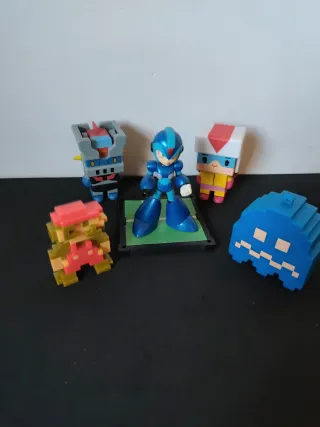 Pack de figuras coleccionables de videojuegos y anime. - Incluye 5 figuras. - Personajes de sagas icónicas. - hay dos personajes de Transformers de pixel toys se pueden vender por separado los dos por 10€ -figura de Mario de 2015 jakks -pac man lleva luz desconozco si funciona. El precio es por todas las figuras juntas