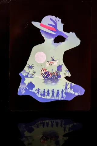 ¡Para auténticos Nakamas! 🏴☠️ Vendo placa decorativa de aluminio de alta calidad con un diseño artístico increíble de One Piece. Se trata de una silueta de Monkey D. Luffy que integra en su interior una escena nocturna con el barco Thousand Sunny y las sombras de la tripulación de los Sombrero de Paja. ✨ Características principales: Material: Aluminio ligero y resistente con acabado brillante. Tamaño: 15 x 20 cm (ideal para estanterías, paredes o escritorios).