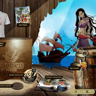 Edición "Mercenary Edition" coleccionista del juego Golden Force para Nintendo Switch. - Futurepak numerado (caja metálica). - Juego estándar incluido precintado - Certificado limitado Pixelheart. - Camiseta (talla grande). - Caja de madera limitada (1000 copias). - Magneto medallón. - Llavero pixelado - Posavasos de cuero.