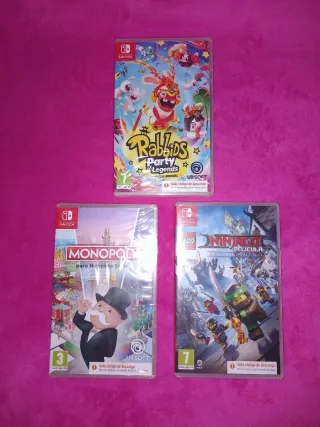 Lote de tres videojuegos para Nintendo Switch. - Mario & Rabbids Party Legends - Monopoly para Nintendo Switch - LEGO Ninjago: La Película El Videojuego Sin abrir con su precinto