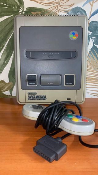 Consola Super Nintendo en color beige y gris, con dos mandos incluidos. En muy buen estado a pesar de los años. Se encendió para probarla y funciona correctamente. Incluye: - Consola. - Dos mandos. - Cableado. Entrega en mano en Ourense o alrededores. Se hacen envíos a toda España, gastos a cargo del comprador.