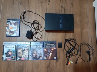 Pack PlayStation 2 en buen estado: consola PS2, tarjeta de memoria original, cables, EyeToy y 5 juegos (MotoGP3, Star Wars Battlefront, Call of Duty Finest Hour, Star Wars Bounty Hunter y EyeToy Play). Lote valorado por separado en unos 90–120 €. La consola se ha comporbado que funciona pero los juegos no, aunque se dejaron funcionando. Ideal para colección o volver a disfrutar de la PS2 clásica. Se vende todo junto. Si tienes dudas o quieres más fotos no dudes en escribirme. Se pueden hacer lotes entre los productos de mi perfil.