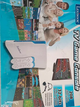 Consola de videojuegos Lexibook en color blanco, lista para horas de diversión. - Incluye dos mandos para jugar. - Cable de alimentación y cable HDMI incluidos.
