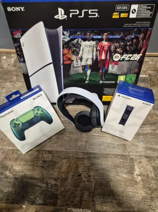 Se vende consola PlayStation 5 junto con accesorios. - Incluye mando DualSense. - Incluye auriculares Pulse 3D. - Incluye base de carga DualSense. - Edición FC 24.
