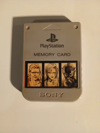 Tarjeta de memoria para PlayStation. - Diseño clásico gris. - Incluye arte de personajes icónicos.