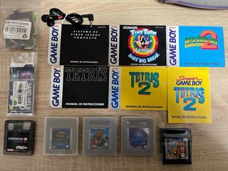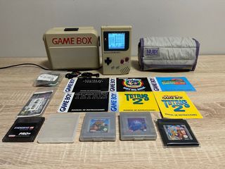 Consola portátil clásica Nintendo Game Boy DMG. - Incluye varios juegos y accesorios. - Juegos visibles: Tetris, Batman, The Beauty and the Beast, etc, mas manuales de otros juegos. - Incluye Everdrive GB Pro+ con SD con juegos. - Funda de transporte Nuby y Caja de transporte Game Box. La consola ha sufrido modificaciones en pantalla y batería, que mejoran la consola para su uso en la actualidad. Aun así se incluyen piezas originales sustituidas. Nota: la consola ha sido probada para hacer las fotos de venta, pero no se puede garantizar su funcionalidad con un uso exhaustivo. Si compras este articulo, es bajo tu responsabilidad.