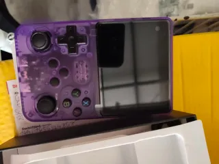 Consola portátil de juegos en color morado y negro. - Diseño transparente en la carcasa. - Pantalla de alta resolución. - Controles ergonómicos.