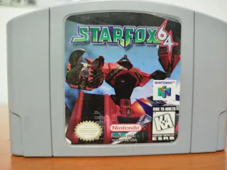 Cartucho del videojuego Star Fox 64 para Nintendo 64. USA - Juego de disparos. - Contenido clasificado para todos los públicos (KA). - Sello oficial de calidad Nintendo.