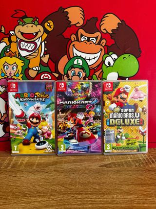 Tres juegos para Nintendo Switch. - Mario + Rabbids Kingdom Battle - Mario Kart 8 Deluxe - New Super Mario Bros. U Deluxe en perfectas condiciones SOMOS POWER VIDEOGAMES 🎮👾🕹️ TENEMOS LAS MEJORES CONSOLAS DEL MERCADO, Garantizadas. FOTOS REALES LO QUE VES ES LO QUE COMPRAS.! Tienda especializada en NINTENDO SWITCH TODOS NUESTROS ARTÍCULOS ESTÁN CUIDADOSAMENTE PROBADOS POR EXPERTOS. SOMOS LOS MEJORES DE ESPAÑA 🇪🇸 Y EUROPA EN CALIDAD PRECIO.