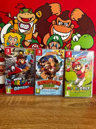 Tres videojuegos para Nintendo Switch. - Super Mario Odyssey - Donkey Kong Country: Tropical Freeze - Mario Golf: Super Rush en perfectas condiciones SOMOS POWER VIDEOGAMES 🎮👾🕹️ TENEMOS LAS MEJORES CONSOLAS DEL MERCADO, Garantizadas. FOTOS REALES LO QUE VES ES LO QUE COMPRAS.! Tienda especializada en NINTENDO SWITCH TODOS NUESTROS ARTÍCULOS ESTÁN CUIDADOSAMENTE PROBADOS POR EXPERTOS. SOMOS LOS MEJORES DE ESPAÑA 🇪🇸 Y EUROPA EN CALIDAD PRECIO.
