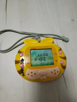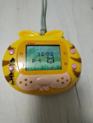 Divertido Tamagotchi con diseño de tigre. - Color amarillo vibrante. - Forma de animal con orejas. - Pantalla a color con gráficos. - Colgante para llevarlo contigo.
