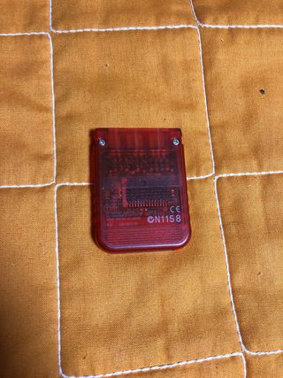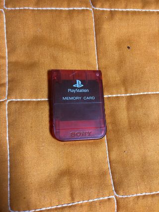 Tarjeta de memoria para PlayStation 2. - Color rojo translúcido. - Diseño clásico de Sony.
