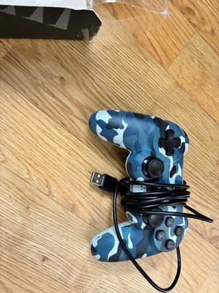 Mando de PS4 con un diseño de camuflaje en tonos azules y blancos. Incluye cable USB. - Diseño de camuflaje. - Conexión por cable.