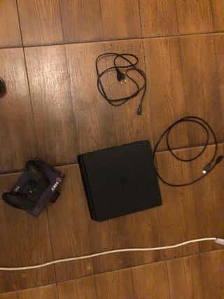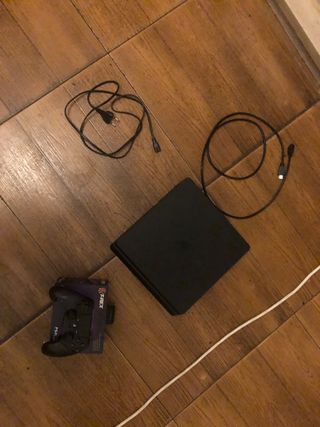 Consola PlayStation 4 en color negro, junto con un mando. - Incluye cables de conexión. - Mando con diseño T-Rex.