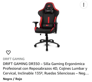 Se venden dos sillas gaming Drift DR350 en color negro y rojo. Son sillas ergonómicas profesionales. - Reposabrazos 4D. - Cojines lumbar y cervical incluidos. - Inclinable hasta 135º. - Ruedas silenciosas.