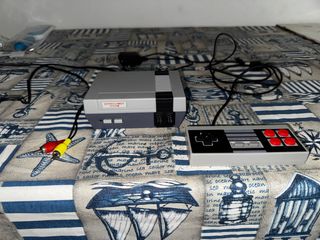 Consola tipo Nintendo NES (clon, no original) en muy buen estado. Funciona perfectamente y tiene juegos integrados incluidos. Ideal para revivir juegos retro o como regalo. Se ha usado muy poco, está prácticamente como nueva. Entrega en mano o envío.