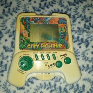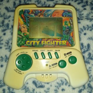 Consola de videojuegos portátil City Fighter. - Diseño compacto y ergonómico. - Botones de control verdes. - Pantalla LCD. - Gráficos temáticos de City Fighter.