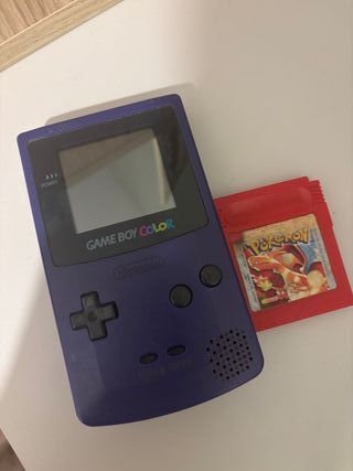 Consola portátil Nintendo Game Boy Color en color morado. Incluye el cartucho del juego aunque no funciona Pokémon Rojo. - Pantalla a color. - Diseño ergonómico. - Cartucho de juego Pokémon Rojo incluido.