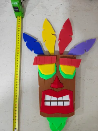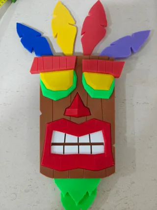 Máscara aku aku del videojuego crash Bandicoot. Hecha en PLA+ por impresion 3d Tamaño grande, unos 44cm como se aprecia en la foto