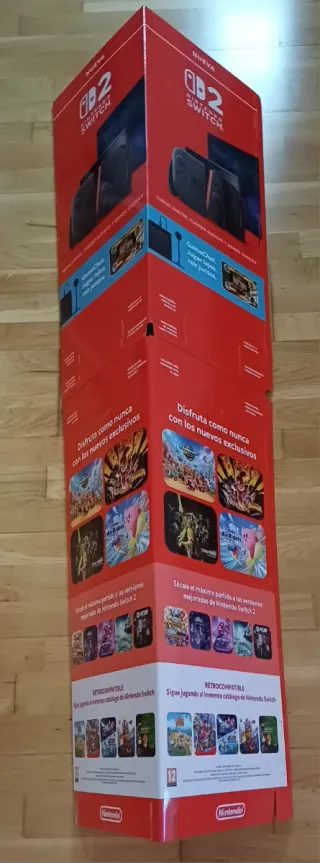 Totem Nintendo Switch 2 con iconos videojuegos y porta-catálogos. 1,50 x 30cm.