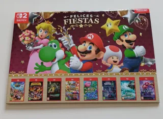 Cartón Nintendo Switch Felices Fiestas Navidad.
