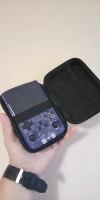 Consola de videojuegos portátil con diseño retro de Game Boy - Modelo R36S. - Color púrpura transparente - Más de 400 juegos simulador de otras consolas retro -Carga USB tipo C -Regalo estuche