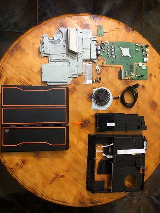 - Carcasa edición especial por BO3. - Placa base (Funciona perfectamente.) *Le falta un plastiquito que sujeta la pila, pero eso tiene fácil arreglo. - Ventilador ps4 SLIM - Fuente de alimentación. - Chasis interno y otros componentes. - Lector.