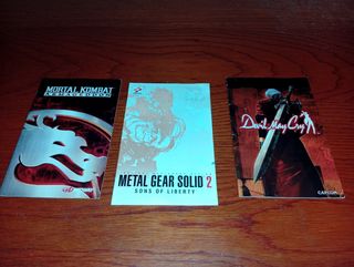 Conjunto de manuales para PlayStation 2. - Mortal Kombat: Armageddon Pal España se encuentra en buen estado - Metal Gear Solid 2: Sons of Liberty Pal UK se encuentra en buen estado - Devil May Cry Pal España la portada tiene algo de arrugas pero en buen estado en general. A recoger zona Telde o me desplazo según la zona. Puedo enviar por correo certificado entre islas o península ( artículo+envío) Contactar cualquier duda.