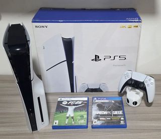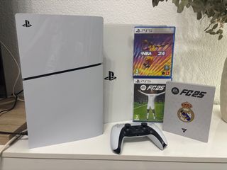 Consola Playstation 5 con lector de discos y 1TB de almacenamiento. - Incluye mando DualSense. - Base vertical. - Juegos: FC25 y Rainbow Six Siege. - 10 meses de poco uso.