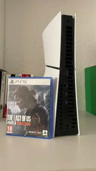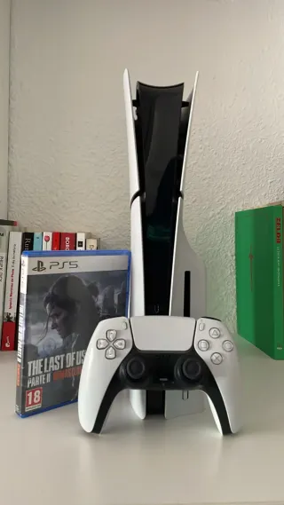 Consola de videojuegos en color blanco. - Modelo: Playstation 5 Slim - Capacidad: 1TB - Incluye mando DualSense blanco. - Incluye 3 juegos • Físico: ○ The last of us • Digitales: ○ Spiderman 2 ○ Black Myth: Wukong NO NEGOCIABLE