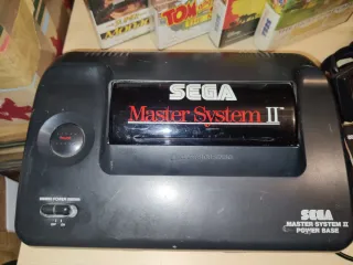 Sega Master System II Lote compuesto por consola, con alguna marca pero en buen estado, un mando y el cable de antena, lote de 4 juegos, 3 de ellos completos y en muy buen estado, el Rey León, el Tom y Jerry y el Donald y uno el Ayrton Senna sólo con el cartucho y la carátula con humedad, todo funciona perfectamente.
